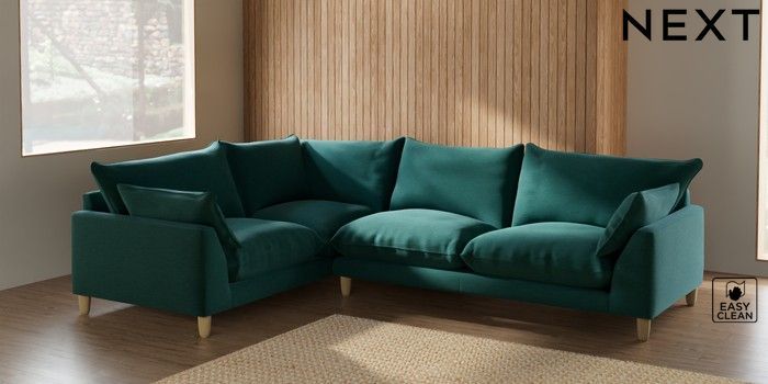 7.2.6 Buy Noa Deep Relaxed Sit Large Corner Sofa - Left Hand Fine Chenille Easy Clean Dark Juniper Green High Leg - Light from the Next UK online shop Click here to use our accessible website