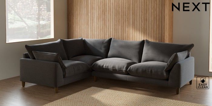 7.2.6 Buy Noa Deep Relaxed Sit Large Corner Sofa - Left Hand Fine Chenille Easy Clean Dark Smoke Grey High Leg - Mid from the Next UK online shop Click here to use our accessible website
