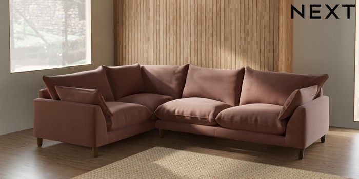 7.2.6 Buy Noa Deep Relaxed Sit Large Corner Sofa - Left Hand Relaxed Linen Look Light Rust Brown High Leg - Mid from the Next UK online shop Click here to use our accessible website