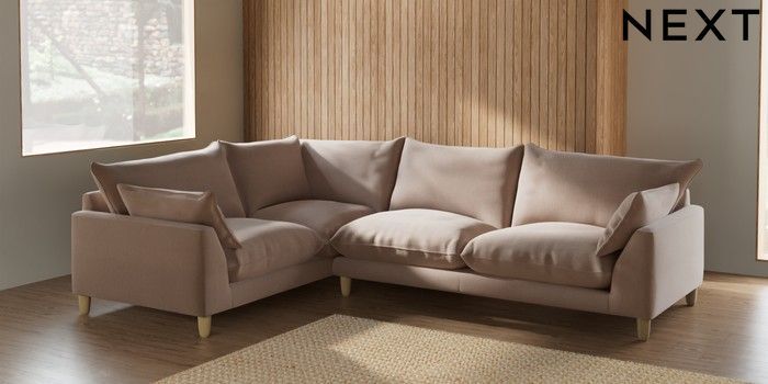 7.2.6 Buy Noa Deep Relaxed Sit Large Corner Sofa - Left Hand Relaxed Linen Look Mid Natural High Leg - Light from the Next UK online shop Click here to use our accessible website