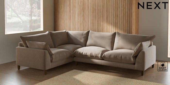 7.2.6 Buy Noa Deep Relaxed Sit Large Corner Sofa - Left Hand Tweedy Blend Easy Clean Light Dove Natural High Leg - Mid from the Next UK online shop Click here to use our accessible website