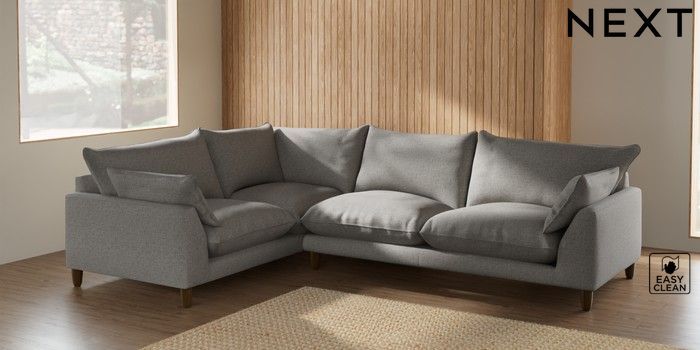 7.2.6 Buy Noa Deep Relaxed Sit Large Corner Sofa - Left Hand Woven Chenille Easy Clean Light Grey High Leg - Mid from the Next UK online shop Click here to use our accessible website