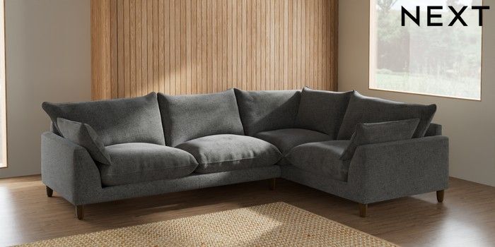 7.2.6 Buy Noa Deep Relaxed Sit Large Corner Sofa - Right Hand Chunky Chenille Dark Grey High Leg - Mid from the Next UK online shop Click here to use our accessible website