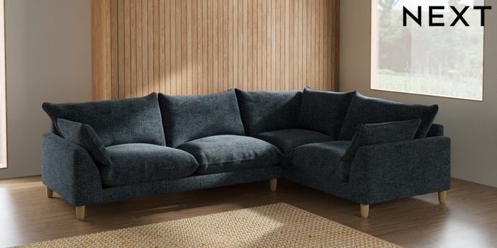 7.2.6 Buy Noa Deep Relaxed Sit Large Corner Sofa - Right Hand Chunky Chenille Dark Navy Blue High Leg - Light from the Next UK online shop Click here to use our accessible website