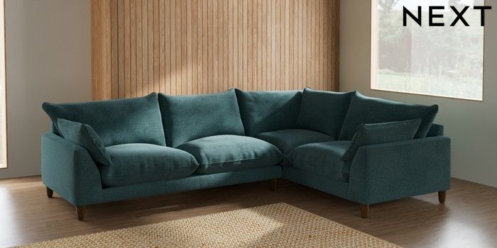 7.2.6 Buy Noa Deep Relaxed Sit Large Corner Sofa - Right Hand Chunky Chenille Mid Teal Green High Leg - Mid from the Next UK online shop Click here to use our accessible website