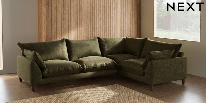 7.2.6 Buy Noa Deep Relaxed Sit Large Corner Sofa - Right Hand Cotswold Chenille Dark Green High Leg - Mid from the Next UK online shop Click here to use our accessible website