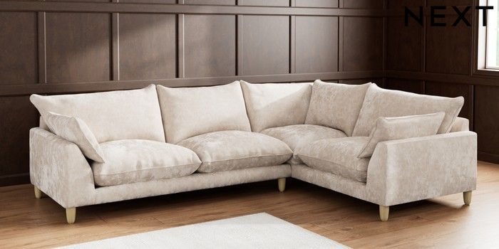 7.2.6 Buy Noa Deep Relaxed Sit Large Corner Sofa - Right Hand Distressed Velour Mid Natural High Leg - Light from the Next UK online shop Click here to use our accessible website