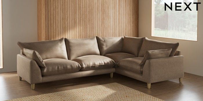 7.2.6 Buy Noa Deep Relaxed Sit Large Corner Sofa - Right Hand Luxe Chenille Mid Camel Beige High Leg - Light from the Next UK online shop Click here to use our accessible website