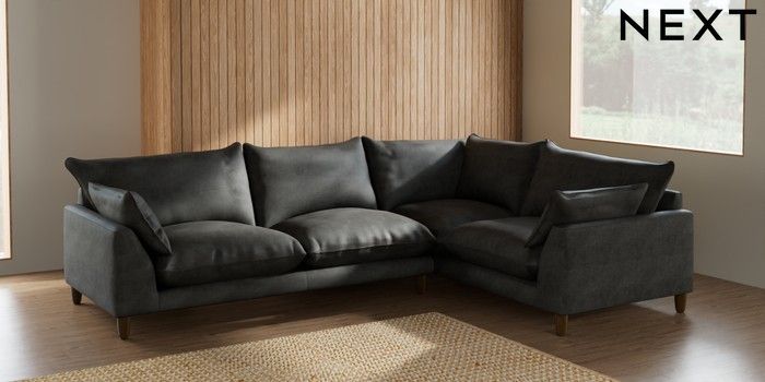 7.2.6 Buy Noa Deep Relaxed Sit Large Corner Sofa - Right Hand Monza Faux Leather Easy Clean Dark Grey High Leg - Mid from the Next UK online shop Click here to use our accessible website