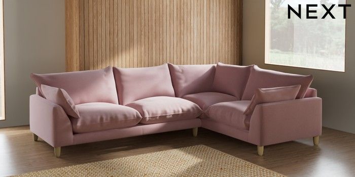 7.2.6 Buy Noa Deep Relaxed Sit Large Corner Sofa - Right Hand Natural Mix Light Rose Pink High Leg - Light from the Next UK online shop Click here to use our accessible website