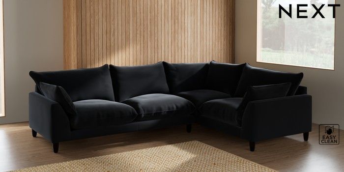 7.2.6 Buy Noa Deep Relaxed Sit Large Corner Sofa - Right Hand Plush Velvet Easy Clean Charcoal Grey High Leg - Dark from the Next UK online shop Click here to use our accessible website