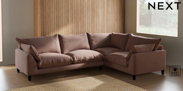 7.2.6 Buy Noa Deep Relaxed Sit Large Corner Sofa - Right Hand Plush Velvet Easy Clean Mid Natural High Leg - Dark from the Next UK online shop Click here to use our accessible website