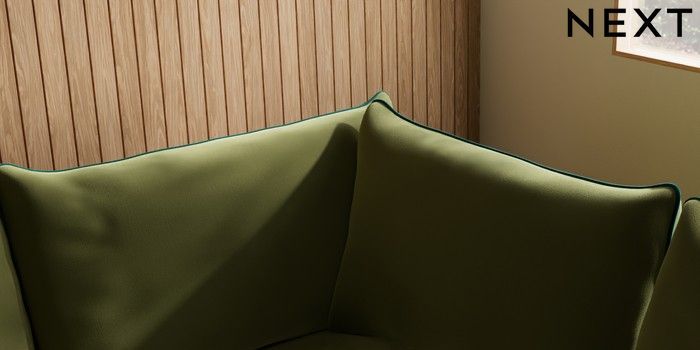 7.3.1 Buy Noa Deep Relaxed Sit Large Corner Sofa - Right Hand Plush Velvet with Contrast Mid Olive Grn with Juniper Grn High Leg - Mid from the Next UK online shop Click here to use our accessible website