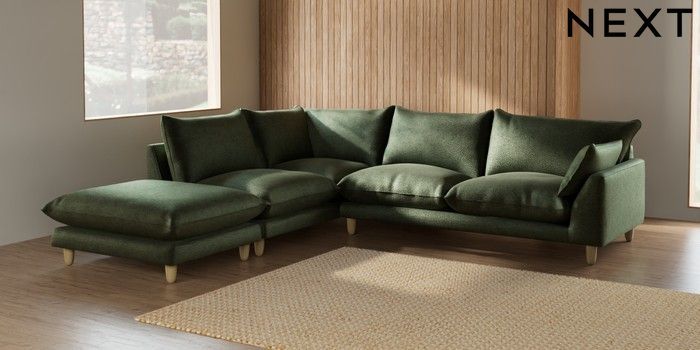 7.2.6 Buy Noa Deep Relaxed Sit Large Open End Corner Chaise - Left Hand Boucle Chenille Dark Moss Green High Leg - Light from the Next UK online shop Click here to use our accessible website