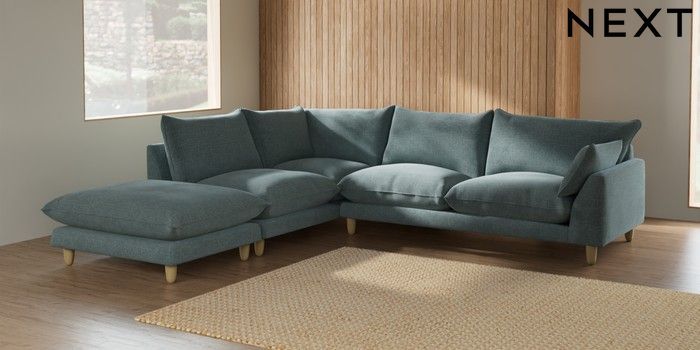 7.2.6 Buy Noa Deep Relaxed Sit Large Open End Corner Chaise - Left Hand Chunky Chenille Light Teal Green High Leg - Light from the Next UK online shop Click here to use our accessible website