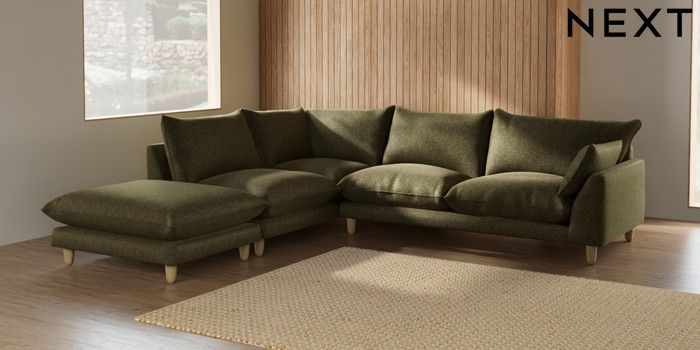 7.2.6 Buy Noa Deep Relaxed Sit Large Open End Corner Chaise - Left Hand Cotswold Chenille Dark Green High Leg - Light from the Next UK online shop Click here to use our accessible website