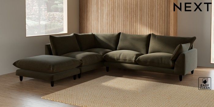 7.2.6 Buy Noa Deep Relaxed Sit Large Open End Corner Chaise - Left Hand Fine Chenille Easy Clean Dark Moss Green High Leg - Dark from the Next UK online shop Click here to use our accessible website