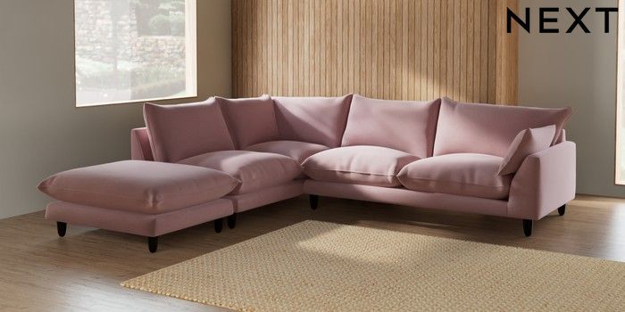 7.2.6 Buy Noa Deep Relaxed Sit Large Open End Corner Chaise - Left Hand Natural Mix Light Rose Pink High Leg - Dark from the Next UK online shop Click here to use our accessible website