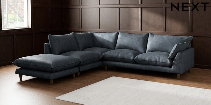 7.2.6 Buy Noa Deep Relaxed Sit Large Open End Corner Chaise - Left Hand Plush Chenille Slate Blue High Leg - Mid from the Next UK online shop Click here to use our accessible website