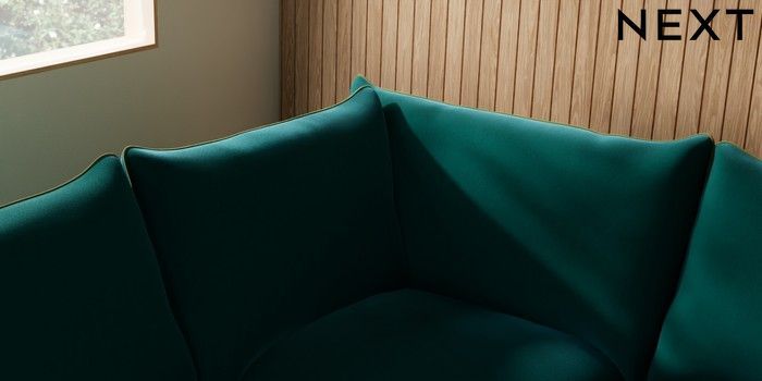 7.3.1 Buy Noa Deep Relaxed Sit Large Open End Corner Chaise - Left Hand Plush Velvet with Contrast Juniper Grn with Mid Olive Grn High Leg - Mid from the Next UK online shop Click here to use our accessible website