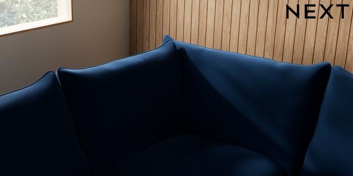 7.3.1 Buy Noa Deep Relaxed Sit Large Open End Corner Chaise - Left Hand Plush Velvet with Contrast Navy Blue with Airforce Blue High Leg - Mid from the Next UK online shop Click here to use our accessible website