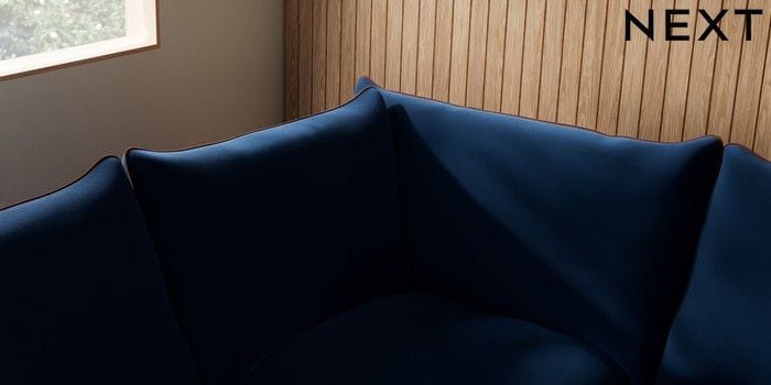7.3.1 Buy Noa Deep Relaxed Sit Large Open End Corner Chaise - Left Hand Plush Velvet with Contrast Navy Blue with Ginger Orange High Leg - Mid from the Next UK online shop Click here to use our accessible website