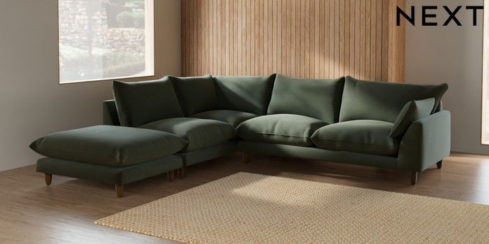 7.2.6 Buy Noa Deep Relaxed Sit Large Open End Corner Chaise - Left Hand Relaxed Linen Look Dark Green High Leg - Mid from the Next UK online shop Click here to use our accessible website