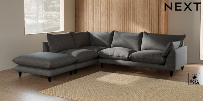 7.2.6 Buy Noa Deep Relaxed Sit Large Open End Corner Chaise - Left Hand Tweedy Blend Easy Clean Dark Grey High Leg - Dark from the Next UK online shop Click here to use our accessible website