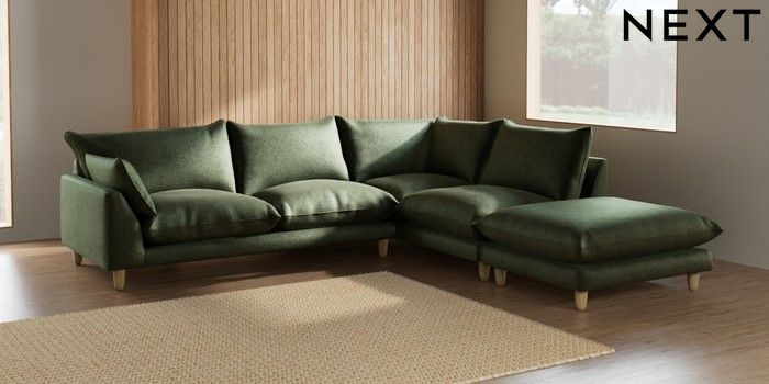 7.2.6 Buy Noa Deep Relaxed Sit Large Open End Corner Chaise - Right Hand Boucle Chenille Dark Moss Green High Leg - Light from the Next UK online shop Click here to use our accessible website
