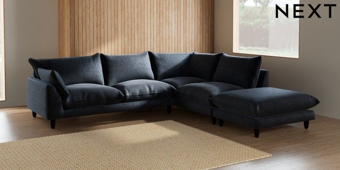 7.2.6 Buy Noa Deep Relaxed Sit Large Open End Corner Chaise - Right Hand Boucle Chenille Dark Slate Blue High Leg - Dark from the Next UK online shop Click here to use our accessible website