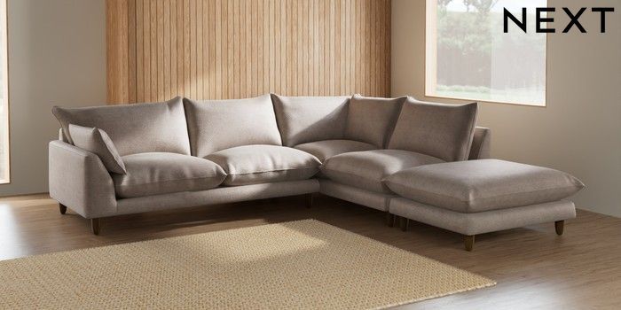 7.2.6 Buy Noa Deep Relaxed Sit Large Open End Corner Chaise - Right Hand Boucle Chenille Light Natural High Leg - Mid from the Next UK online shop Click here to use our accessible website