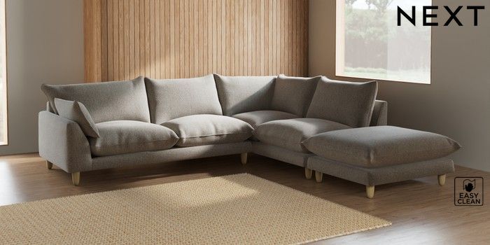 7.2.6 Buy Noa Deep Relaxed Sit Large Open End Corner Chaise - Right Hand Chunky Boucle Easy Clean Dove High Leg - Light from the Next UK online shop Click here to use our accessible website