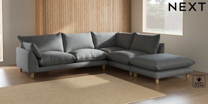 7.2.6 Buy Noa Deep Relaxed Sit Large Open End Corner Chaise - Right Hand Chunky Boucle Easy Clean Mid Grey High Leg - Light from the Next UK online shop Click here to use our accessible website