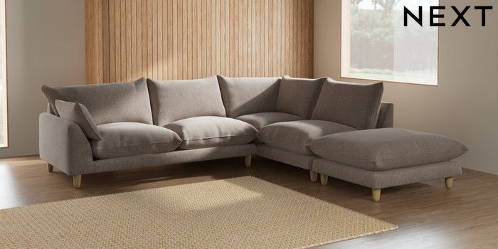7.2.6 Buy Noa Deep Relaxed Sit Large Open End Corner Chaise - Right Hand Chunky Chenille Light Dove High Leg - Light from the Next UK online shop Click here to use our accessible website