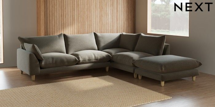 7.2.6 Buy Noa Deep Relaxed Sit Large Open End Corner Chaise - Right Hand Chunky Marl Light Olive Green High Leg - Light from the Next UK online shop Click here to use our accessible website