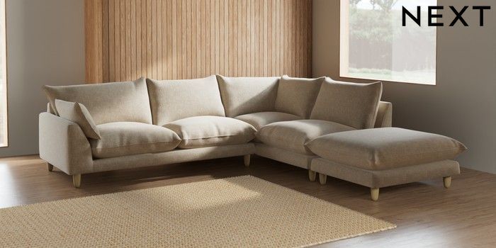 7.2.6 Buy Noa Deep Relaxed Sit Large Open End Corner Chaise - Right Hand Chunky Weave Cream High Leg - Light from the Next UK online shop Click here to use our accessible website