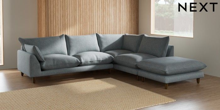 7.2.6 Buy Noa Deep Relaxed Sit Large Open End Corner Chaise - Right Hand Chunky Weave Mid Blue High Leg - Mid from the Next UK online shop Click here to use our accessible website