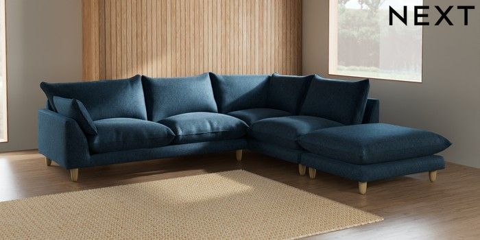 7.2.6 Buy Noa Deep Relaxed Sit Large Open End Corner Chaise - Right Hand Cotswold Chenille Dark Blue High Leg - Light from the Next UK online shop Click here to use our accessible website