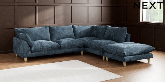 7.2.6 Buy Noa Deep Relaxed Sit Large Open End Corner Chaise - Right Hand Distressed Velour Midnight Blue High Leg - Light from the Next UK online shop Click here to use our accessible website