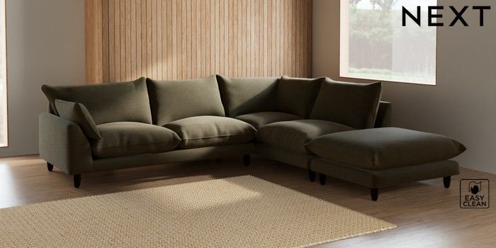 7.2.6 Buy Noa Deep Relaxed Sit Large Open End Corner Chaise - Right Hand Fine Chenille Easy Clean Dark Moss Green High Leg - Dark from the Next UK online shop Click here to use our accessible website