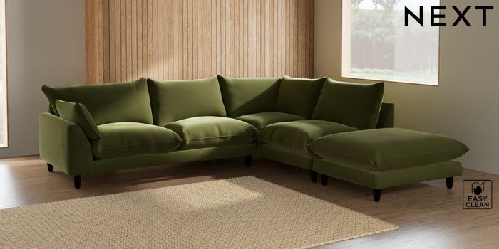 7.2.6 Buy Noa Deep Relaxed Sit Large Open End Corner Chaise - Right Hand Plush Velvet Easy Clean Mid Olive Green High Leg - Dark from the Next UK online shop Click here to use our accessible website