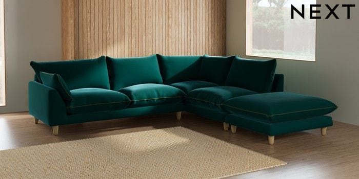 7.3.1 Buy Noa Deep Relaxed Sit Large Open End Corner Chaise - Right Hand Plush Velvet with Contrast Juniper Grn with Mid Olive Grn High Leg - Light from the Next UK online shop Click here to use our accessible website