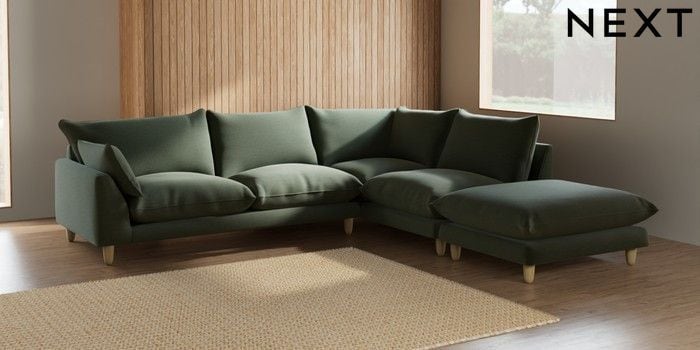 7.2.6 Buy Noa Deep Relaxed Sit Large Open End Corner Chaise - Right Hand Relaxed Linen Look Dark Green High Leg - Light from the Next UK online shop Click here to use our accessible website