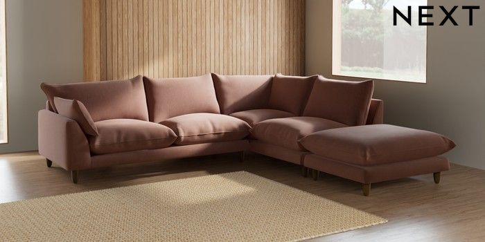 7.2.6 Buy Noa Deep Relaxed Sit Large Open End Corner Chaise - Right Hand Relaxed Linen Look Light Rust Brown High Leg - Mid from the Next UK online shop Click here to use our accessible website
