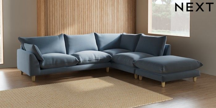 7.2.6 Buy Noa Deep Relaxed Sit Large Open End Corner Chaise - Right Hand Relaxed Linen Look Mid Blue High Leg - Light from the Next UK online shop Click here to use our accessible website