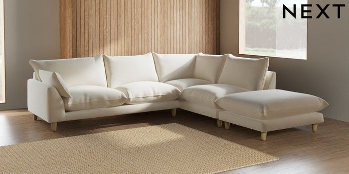 7.2.6 Buy Noa Deep Relaxed Sit Large Open End Corner Chaise - Right Hand Ripple Chenille Oyster High Leg - Light from the Next UK online shop Click here to use our accessible website
