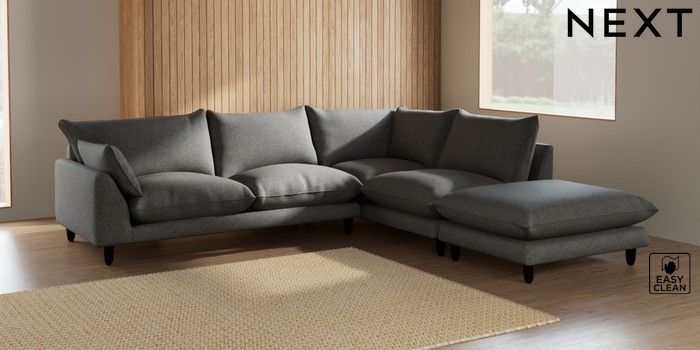 7.2.6 Buy Noa Deep Relaxed Sit Large Open End Corner Chaise - Right Hand Tweedy Blend Easy Clean Dark Grey High Leg - Dark from the Next UK online shop Click here to use our accessible website