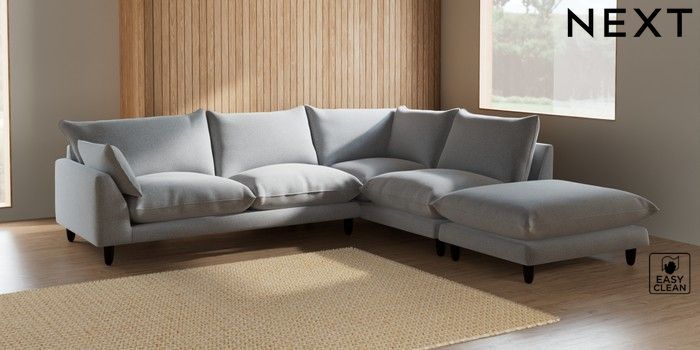 7.2.6 Buy Noa Deep Relaxed Sit Large Open End Corner Chaise - Right Hand Tweedy Blend Easy Clean Light Silver Grey High Leg - Dark from the Next UK online shop Click here to use our accessible website