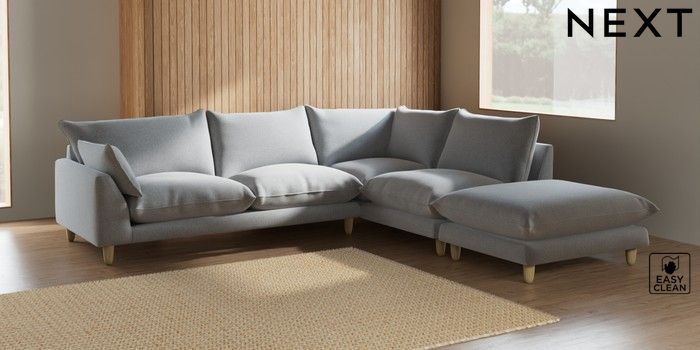 7.2.6 Buy Noa Deep Relaxed Sit Large Open End Corner Chaise - Right Hand Tweedy Blend Easy Clean Light Silver Grey High Leg - Light from the Next UK online shop Click here to use our accessible website