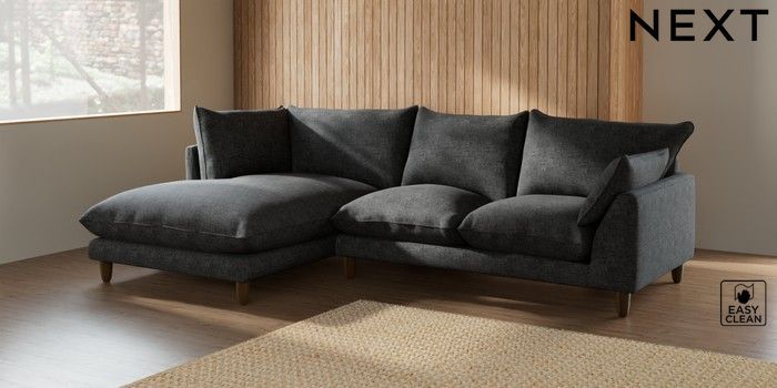 7.2.6 Buy Noa Deep Relaxed Sit Medium Corner Chaise - Left Hand Boucle Weave Easy Clean Charcoal Grey High Leg - Mid from the Next UK online shop Click here to use our accessible website